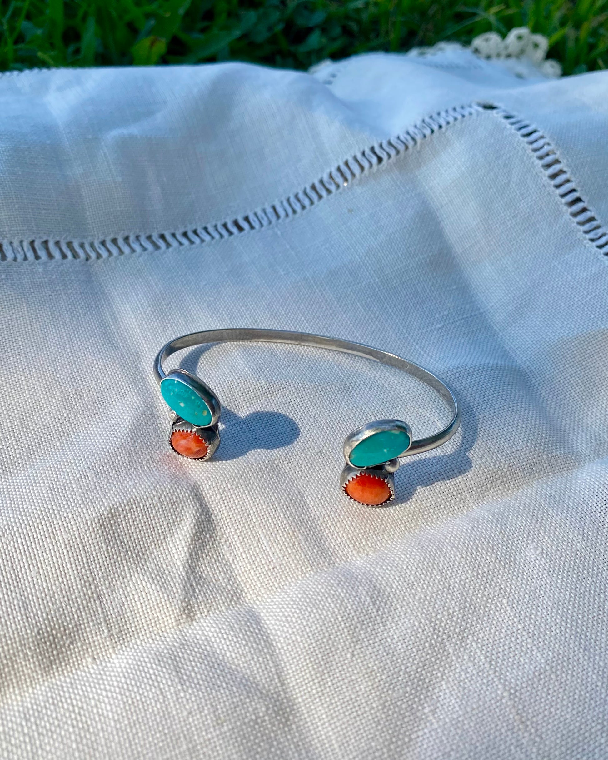 sonoran turquoise & orange spiny butterfly set in sterling silver